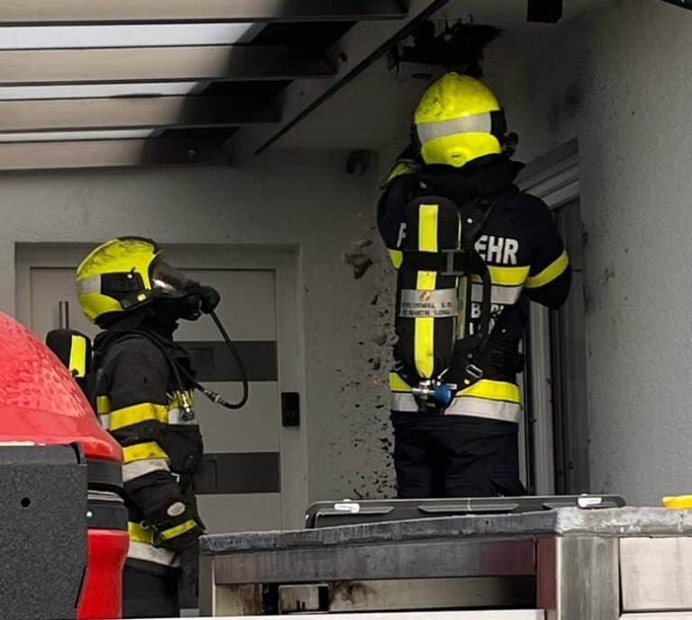 Situtation beim Eintreffen am Einsatzort: Rauchentwicklung im Bereich des Daches. Nach dem ein Zugang zum Dachstuhl hergestellt wurde, konnte ein Glimmbrand im Dachstuhlbereich festgestellt werden. Damit der Brand vollständig gelöscht werden konnte, musste ein Teil vom Dach bzw. von der Dämmung entfernt werden. 3 Atemschutztrupps standen im Löscheinsatz.