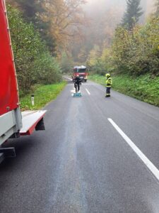 Auf der Landesstrasse 332 im Bereich Luttengraben und auf der Gemeindestrasse Spitzweg musste eine Ölspur gebunden werden.