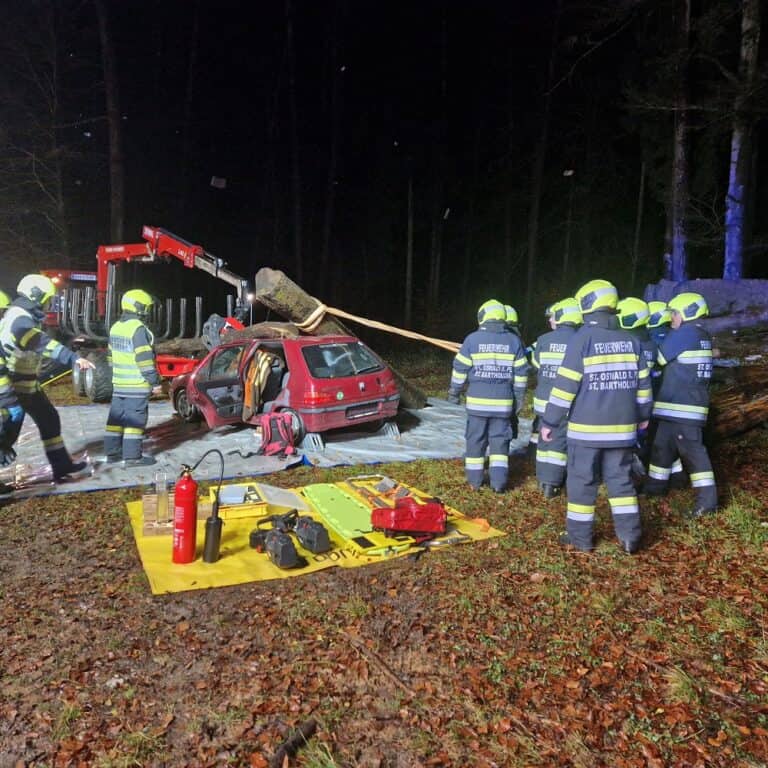 Am 17.November 2025 fand die heurige Abschlussübung statt. Übungsannahme war eine Verkehrsunfall zwischen einem Traktor samt Anhänger und einem PKW mit eingeklemmter Person. Ausgearbeitet und geplant wurde die Übung von BM Martin Steinwender, LM d.F. Christoph Kure und OBM Martin Kainz.