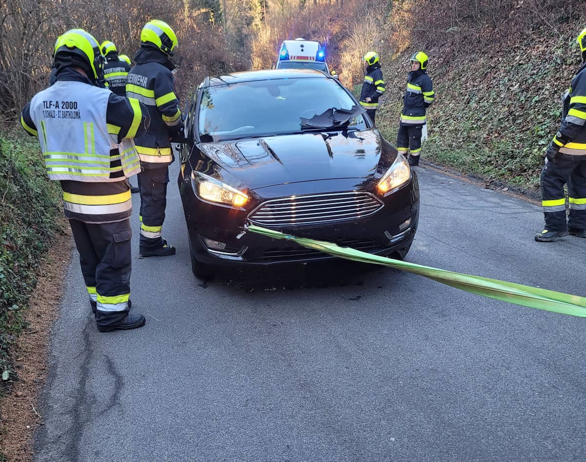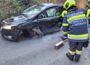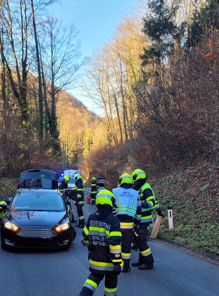 Kollision zwischen zwei PKW`s auf der Landesstraße 332 im Bereich Luttengraben. Nach der Datenaufnahme durch die Polizei wurden die Fahrzeuge von der Straße entfernt.