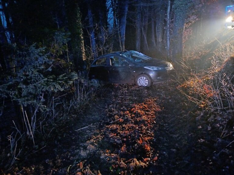 Das Kraftfahrzeug ist von der Straße abgekommen. Die Bergung wurde mittels Seilwinde vom HLF 3 durchgeführt.